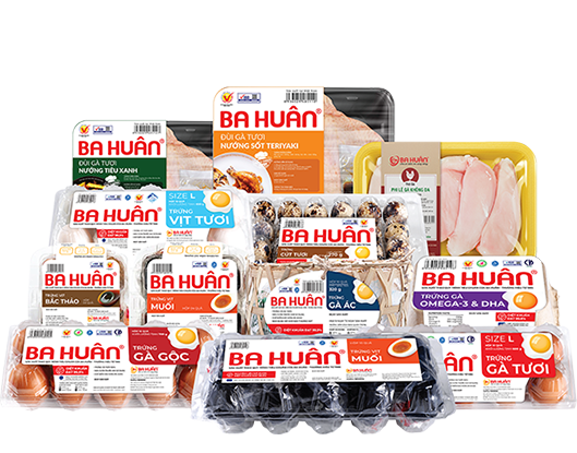 Mô hình khép kín tại Ba Huân đạt chuẩn chất lượng quốc tế từ sản xuất thức ăn chăn nuôi đến nuôi gia cầm và cho ra sản phẩm cuối cùng là sản phẩm trứng, thịt gà và các sản phẩm chế biến liên quan.