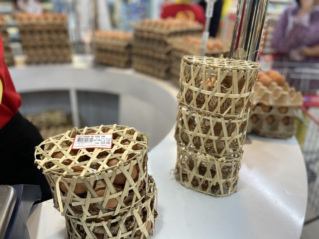 Ba Huân’s fresh egg counter at GO supermarket was created with the same purpose. Here, when customers purchase nutritious fresh eggs, they are completely packaged in hand-woven bamboo baskets or in trays and paper bags made of kraft material. Whether it’s bamboo baskets or kraft paper, these are simple, lightweight, and charming materials that contribute significantly to environmental protection. Even if these bags are discarded into the environment, they can be easily processed and completely biodegraded without causing harm to the ecosystem.