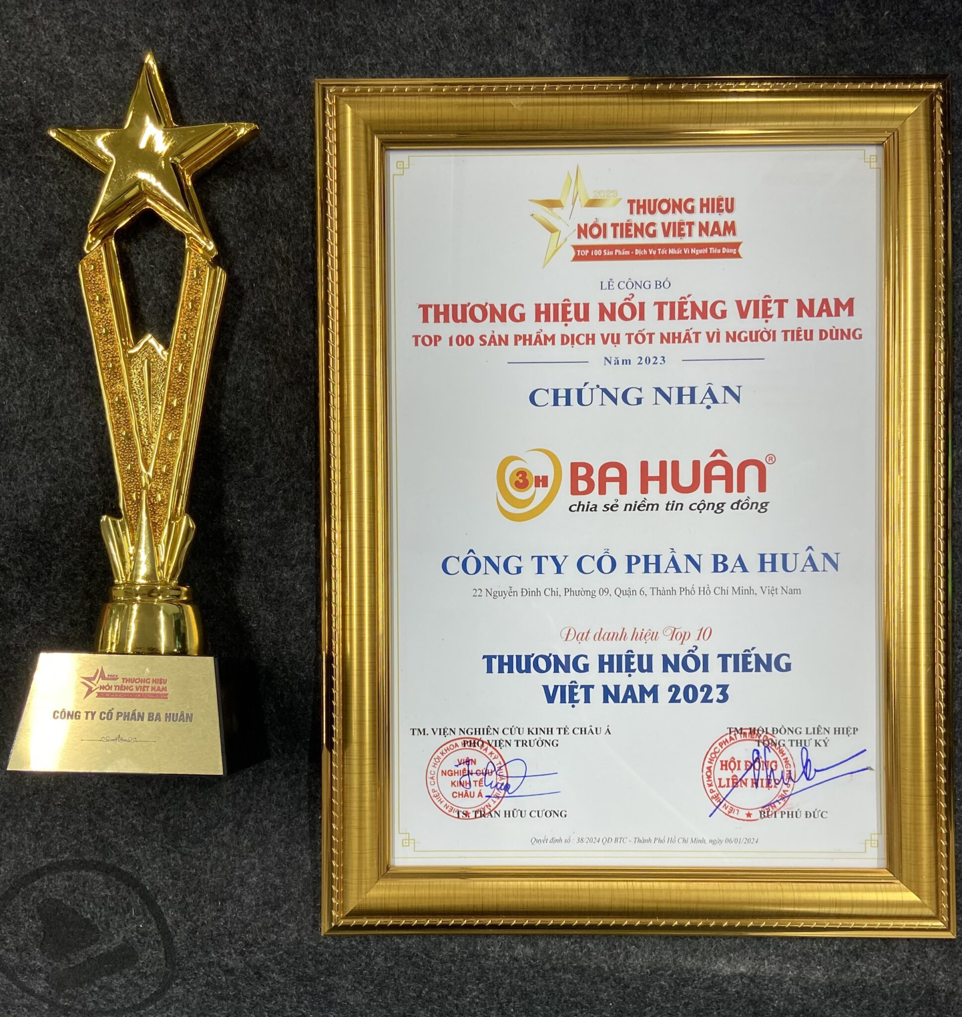 In January 2024, Ba Huân was honored with the “Famous Vietnamese Brand Award – Top 100 Best Products and Services for Consumers in 2023” award, presented by the Vietnam Union of Science and Development Enterprises in collaboration with the Institute for Asian Economic Studies. This recognition was given after Ba Huân met all the standards and achieved outstanding results in each evaluation criterion through the media assessment program starting from October 2023.