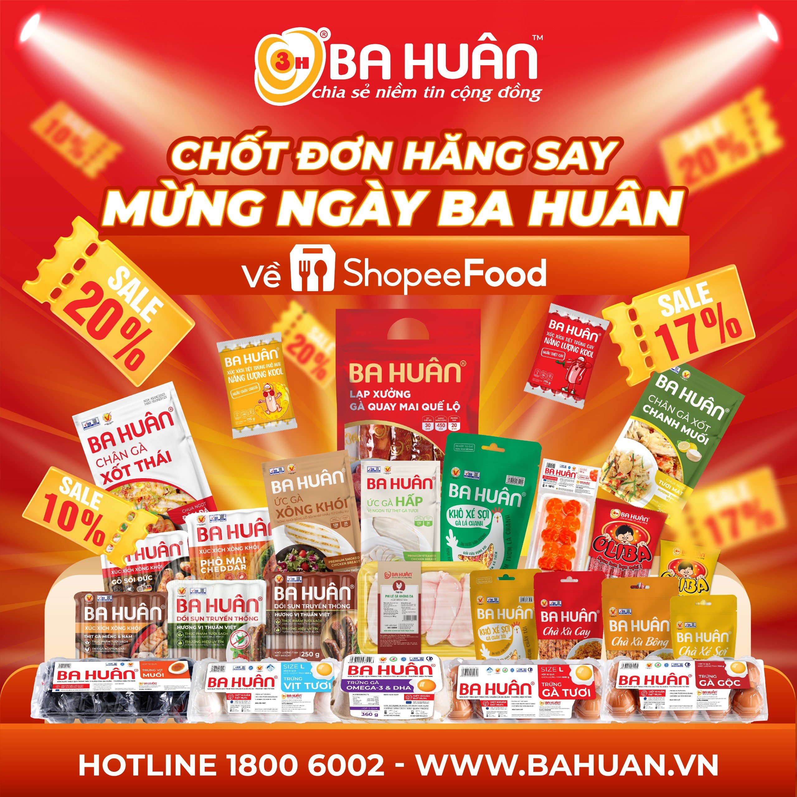 Tháng 03/2024, Ba Huân tiếp tục mở gian hàng trên Shopee Food – ứng dụng mua sắm thực phẩm, đồ ăn nhanh chóng tiện lợi dành cho khách hàng gần xa – với nhiều ưu đãi, giảm giá và khuyến mãi cực kỳ hấp dẫn dành cho người tiêu dùng yêu thích và tin dùng hàng thực phẩm Ba Huân.
